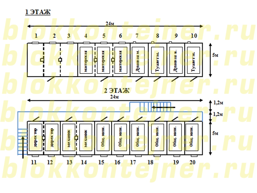 2. Блок -контейнер  БК 5,0*2,4*2,5 - 2 шт.   кабинет директора